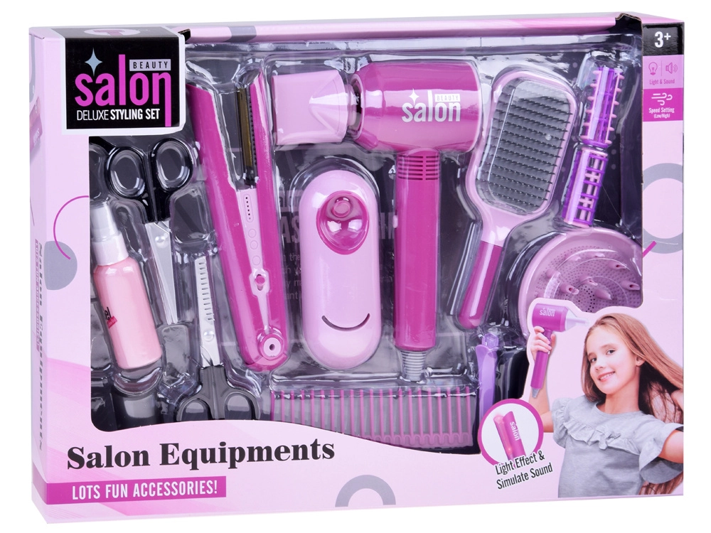 Детският сешоар и преса наподобяват истински инструменти и насърчават ролевата игра. Светлинните и звукови ефекти засилват автентичното салонно изживяване.