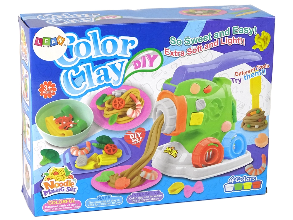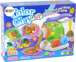 С този забавен комплект децата безопасно ще изпробват приготвянето на „паста“ от пластилин. Основната част е здравата преса, с която масата се притиска през накрайниците и придобива форма на спагети или фузили. Отстрани ще откриете малки формички с форми на броколи, лук и боб за още по-пъстро „меню“.