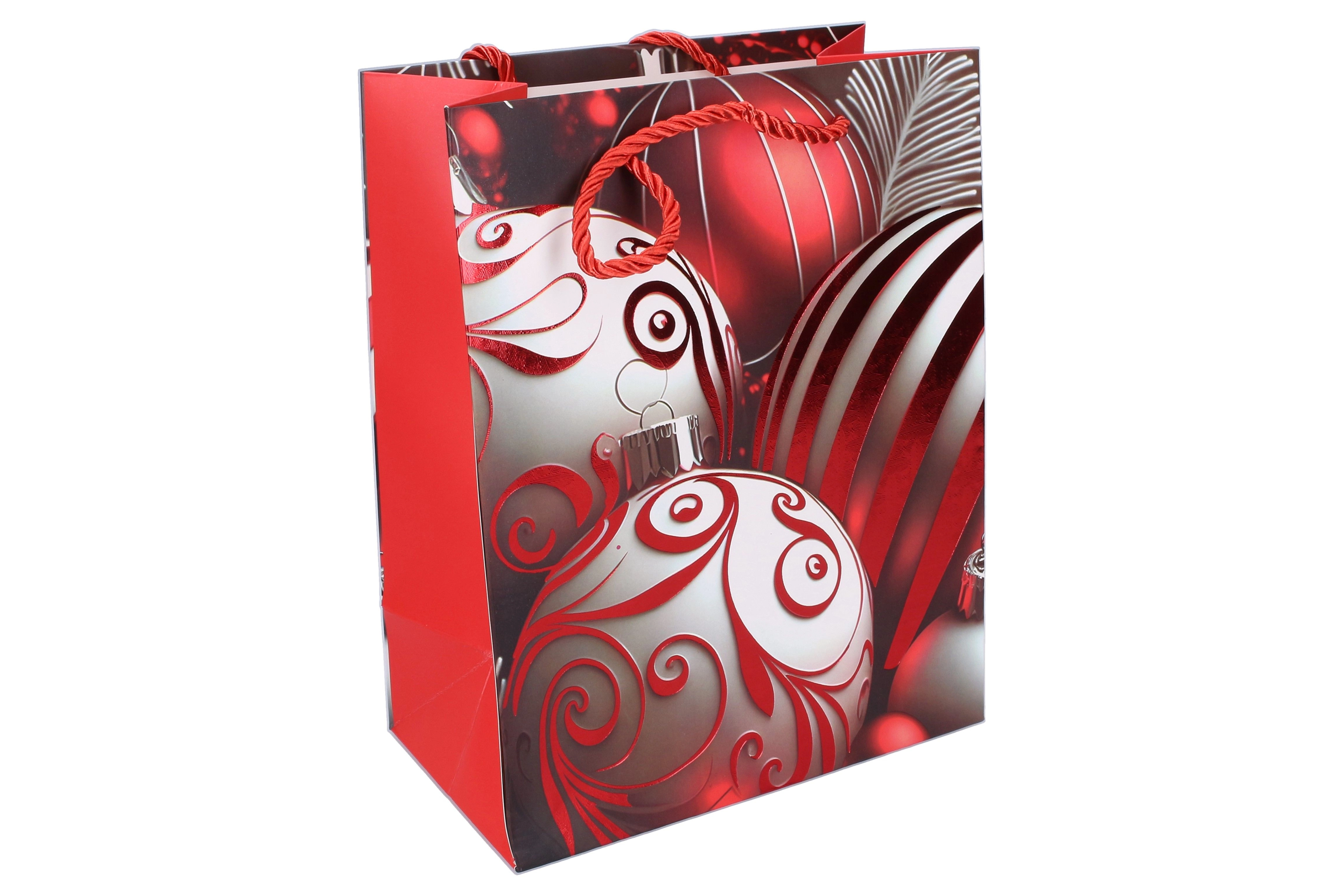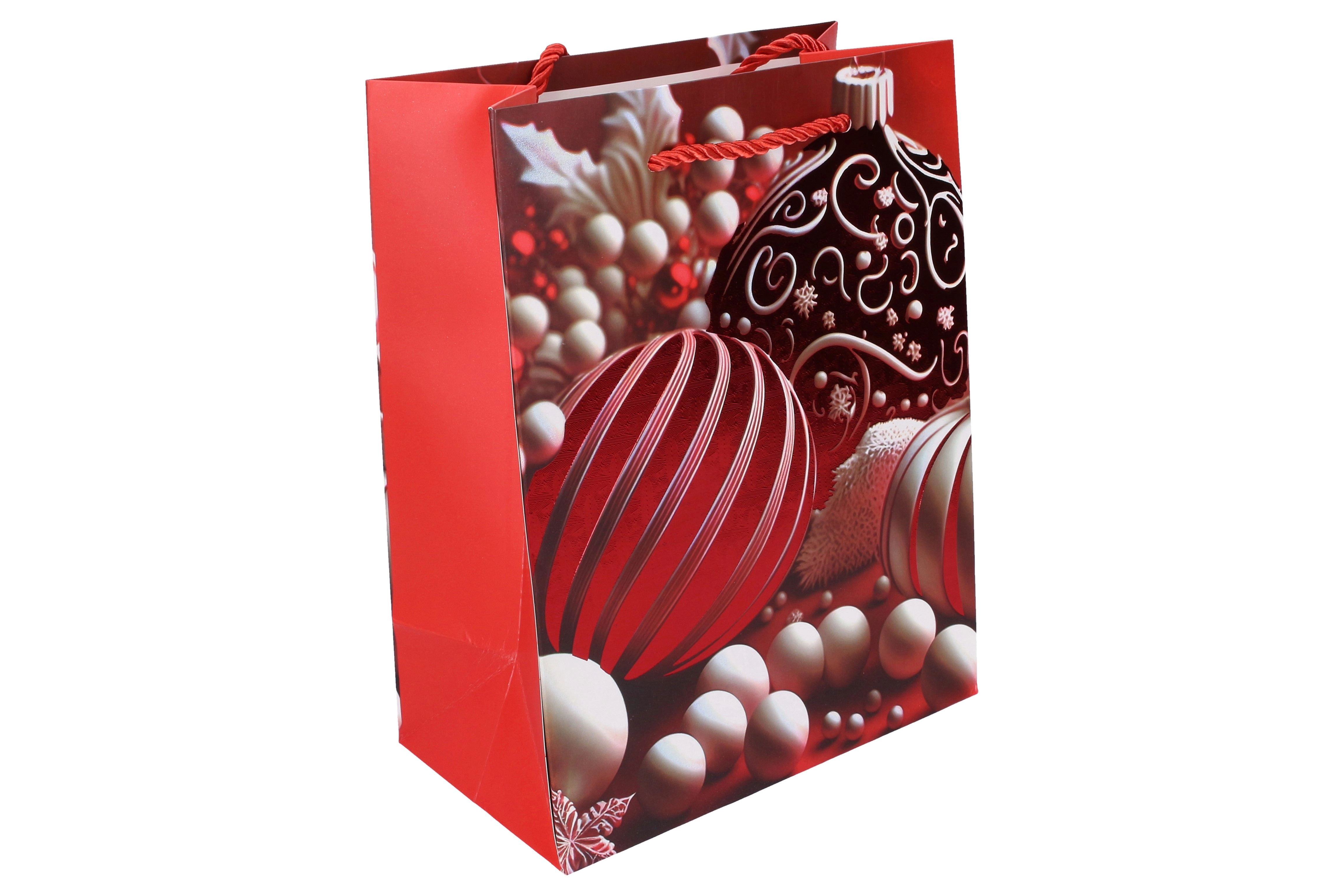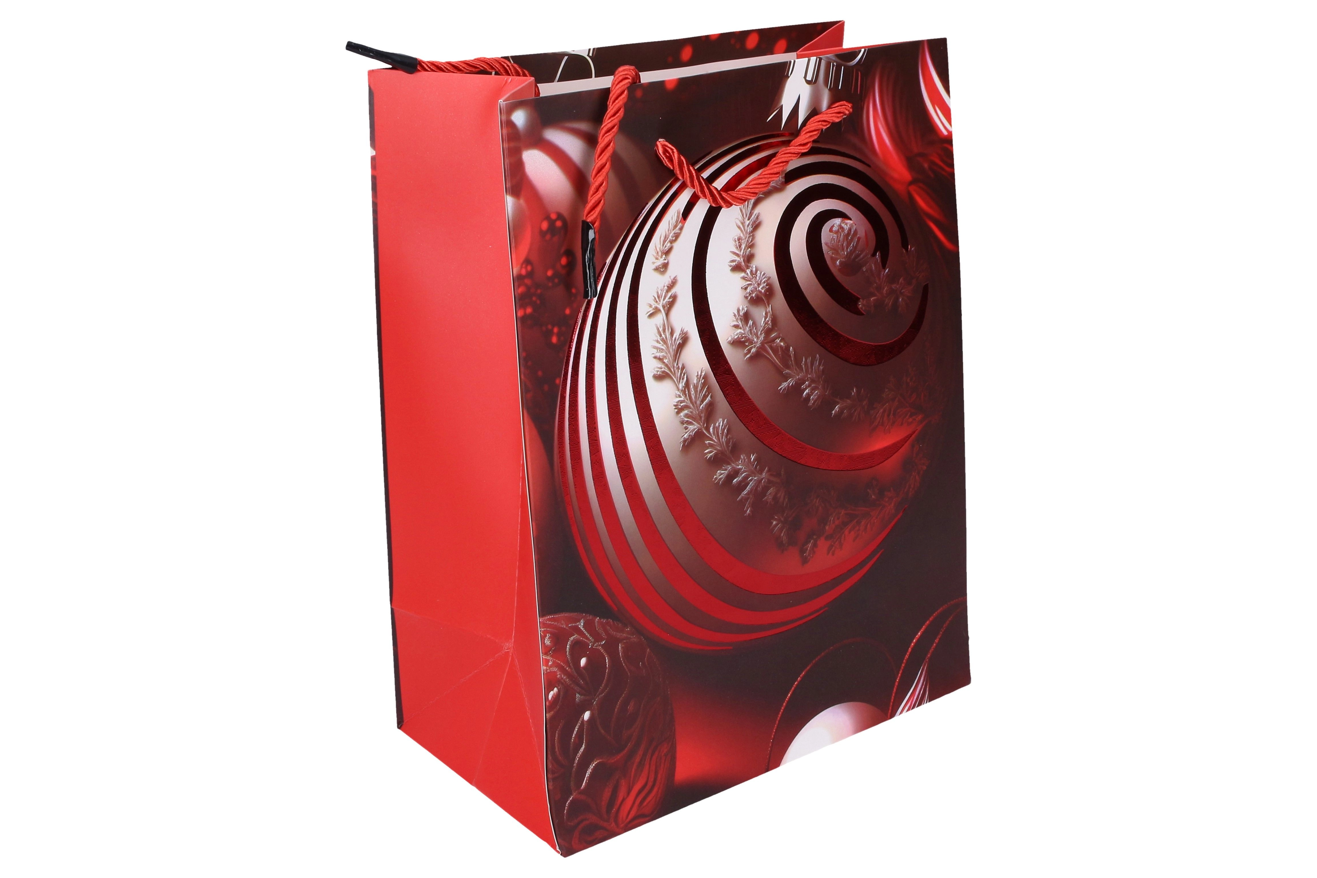 Използвайте я за парфюм, свещ, аксесоари или по-малки играчки. Издръжливата хартия и удобните дръжки осигуряват лесно пренасяне, а декоративният печат подчертава коледното настроение.