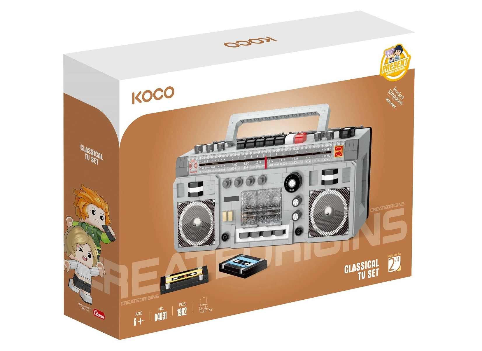 Върнете се в ретро света с реалистичния комплект за сглобяване на касетофон от марката KOCO. Комплектът съдържа 1982 части, 2 фигурки и илюстрирано ръководство за лесно сглобяване. Компактните размери 18,5 × 7,5 × 14,5 cm го правят чудесен колекционерски експонат и стилна декорация.