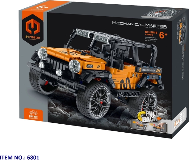 Сглобете реалистичен офроуд автомобил с качествения комплект iM.Master. Сетът предлага 434 части, механизъм за засилване чрез издърпване за движение, отварящи се врати и функционални задни амортисьори за още по-добро изживяване при игра. Размерите на модела са 20,3 × 11 × 11,2 cm.