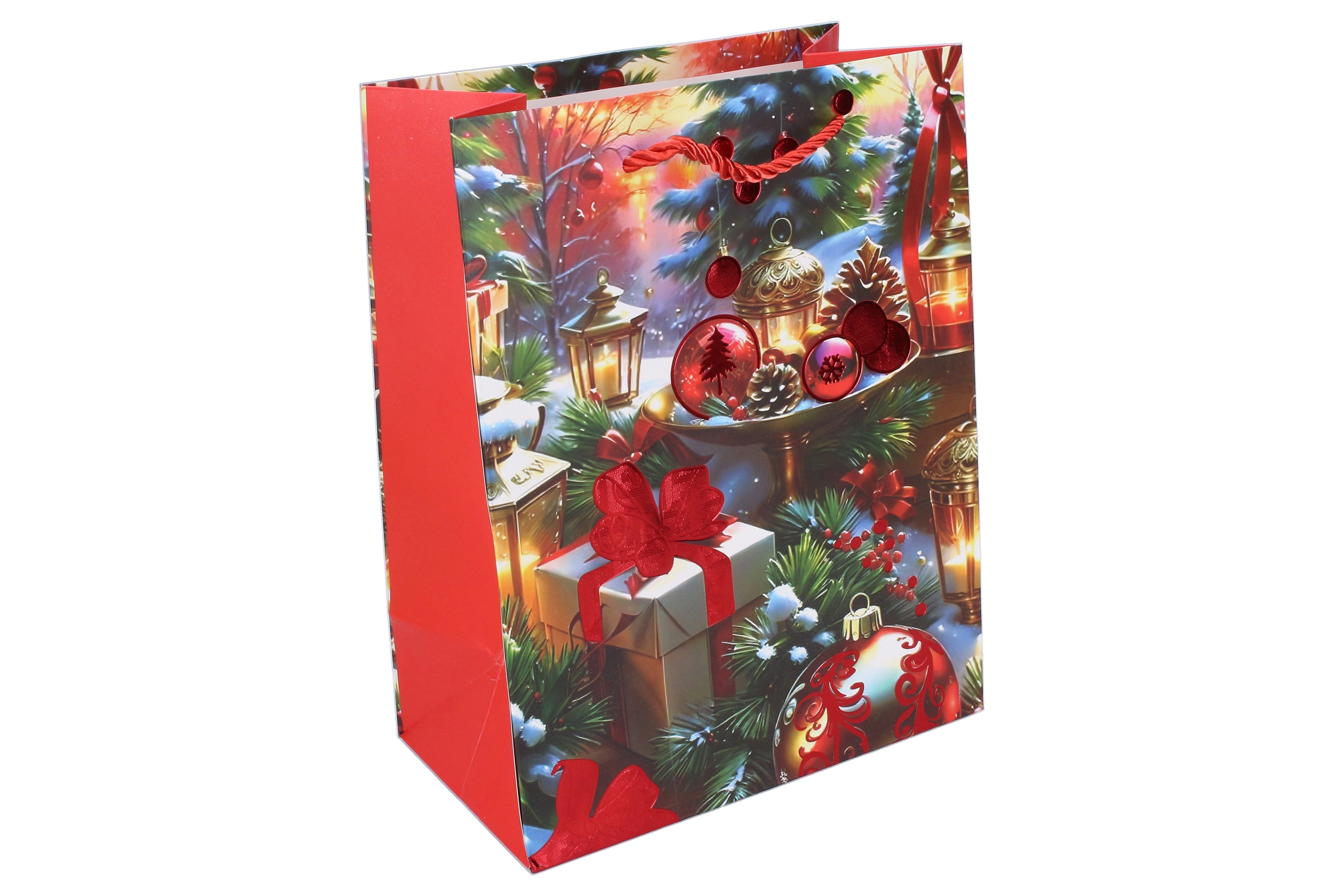 Търсите бързо и елегантно решение за опаковане на подаръци? Тази коледна подаръчна торбичка в размер S е перфектен избор за дребни предмети, козметика, свещи или аксесоари. Благодарение на здравата изработка и практичните дръжки пренасянето на подаръци е удобно и безопасно.