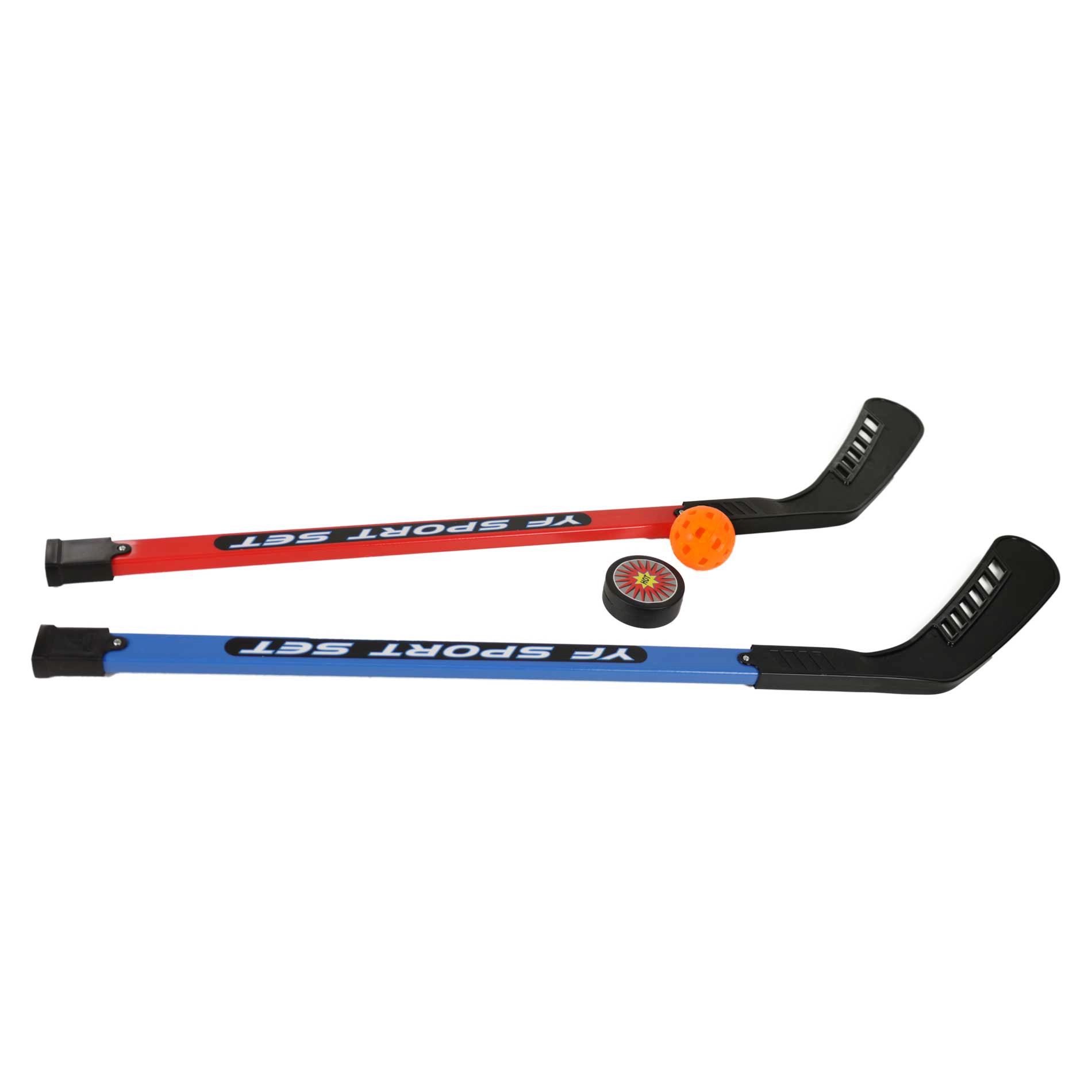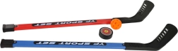 Този комплект ви осигурява всичко необходимо за забавен хокейен мач. Включени са два стика в различни цветове, които прилягат отлично в ръката и са изработени от лек пластмаса, идеални както за игра на закрито, така и на открито.