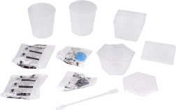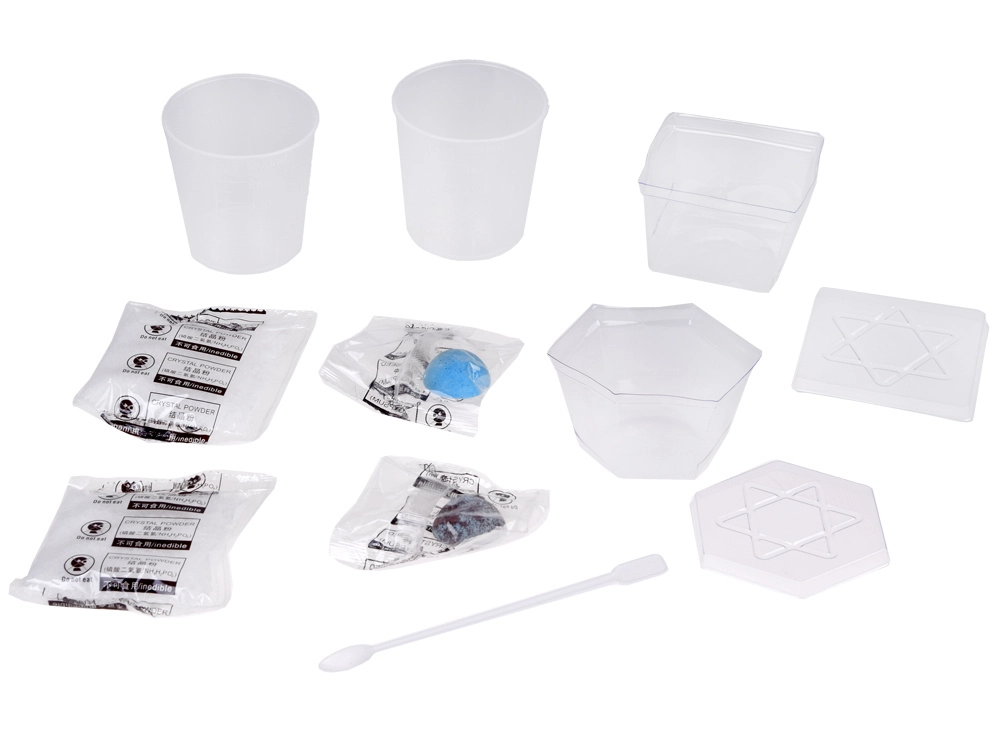 Мерителни чаши, прахове, семена за кристали, витрини и бъркалка – комплектът е напълно оборудван, за да започнете веднага без допълнителни покупки.