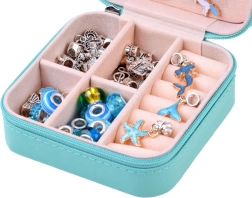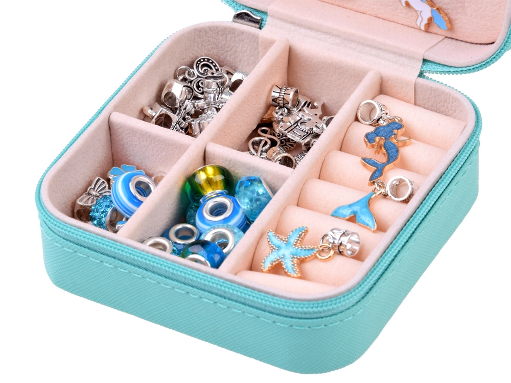 Меките отделения защитават мънистата, висулките и готовите гривни. Идеална за детска стая и за пътуване.