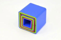 Девет цветни пластмасови кубчета за най-малките подпомагат развитието на фината моторика, логическото мислене и координацията око–ръка. Кухите кубчета могат да се подреждат на кула и да се вкарват едно в друго, като най-голямото е с размер 9 × 9 × 9 см. Подходящи от 1 година, произведени в ЧР. Цветовото изпълнение е в микс от цветове според наличностите на склад.