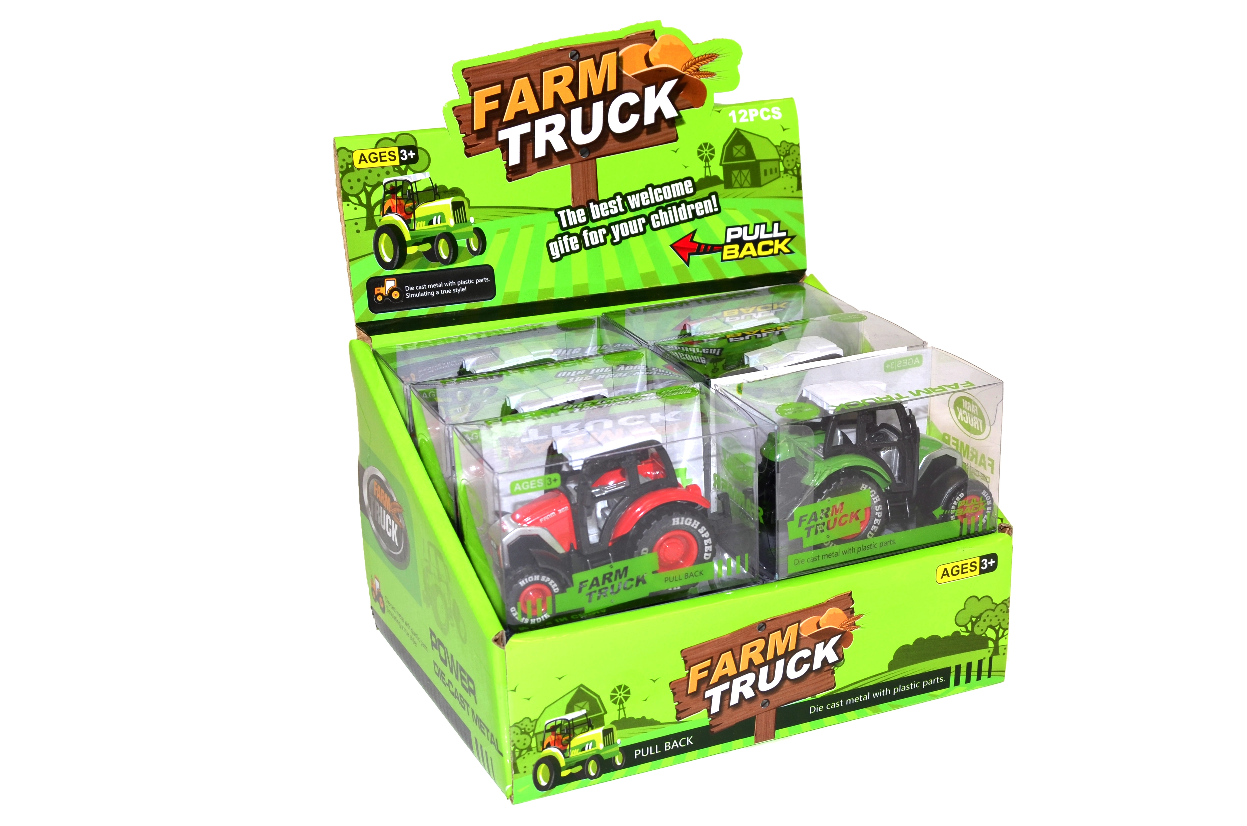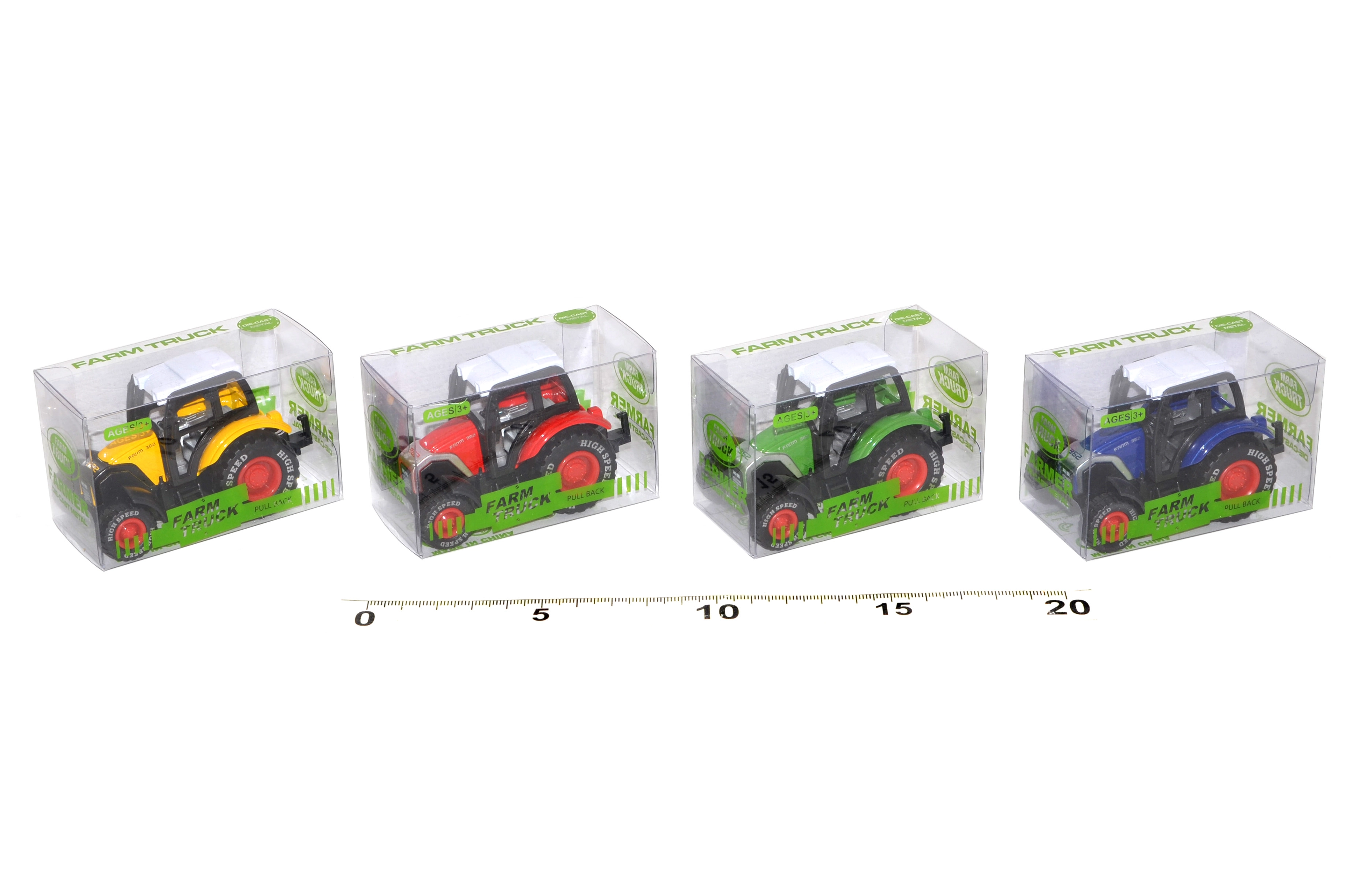 Малък, но мощен трактор с обратно навиване ще зарадва всеки малък фермер. Благодарение на компактния размер от 7 см е идеален за у дома и за път. Достатъчно е да го издърпате назад и гледайте как бързо потегля напред. Предлага се в няколко цвята за още повече забавление. Обратно задвижване, издръжлива изработка и забавление от 3 години.