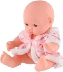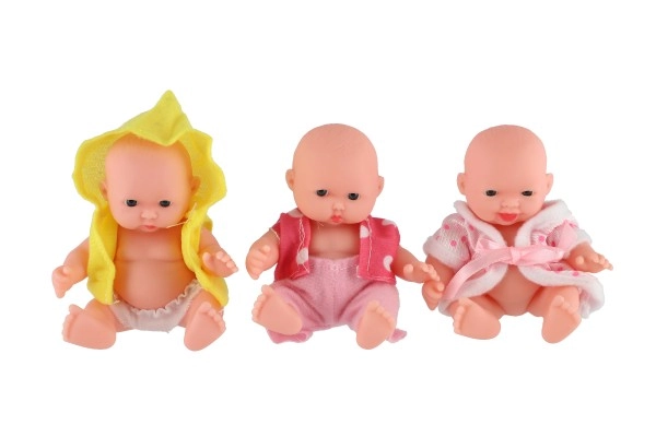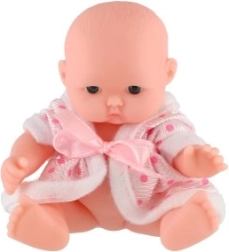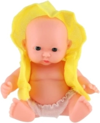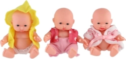 Очарователна бебе кукла с височина 12 см с твърдо пластмасово телце и текстилни дрешки, която ще зарадва всеки малък грижовник. Предлага 3 различни вида, стимулира фантазията и ролевите игри и е подходяща от 3 години. В практична дисплей кутия по 12 броя.