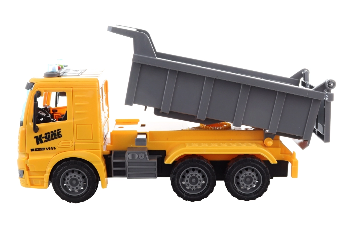 Основното предимство на този камион е способността му да издава реалистични звуци при движение и на заден ход, което засилва усещането за управление. Благодарение на функционалната повдигаща се каросерия децата могат да симулират товарене и разтоварване на материали, което стимулира тяхното въображение и креативност.