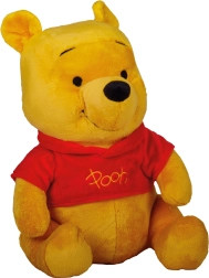 Вярно пресъздаден Мечо Пух с емблематичната червена тениска и надпис „Pooh“ ще зарадва малки и големи фенове.