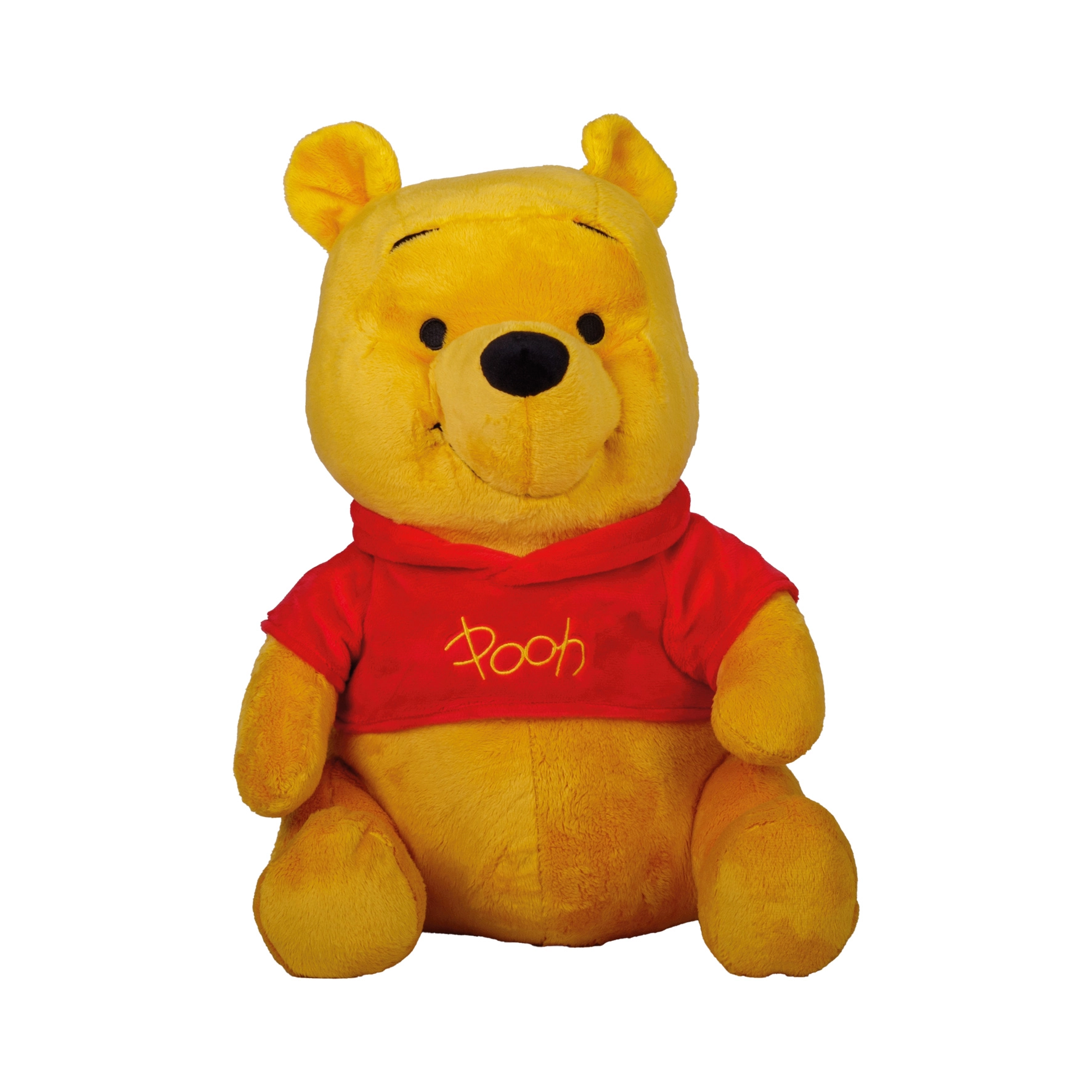 Открийте магията на приказния свят с плюшения Мечо Пух в размер XL. Този емблематичен герой с червена тениска и надпис „Pooh“ е изработен от изключително нежен плюш, който кани към гушкане и дава на децата чувство за сигурност. Благодарение на ярките цветове и приятелското изражение бързо ще стане най-любимият приятел.