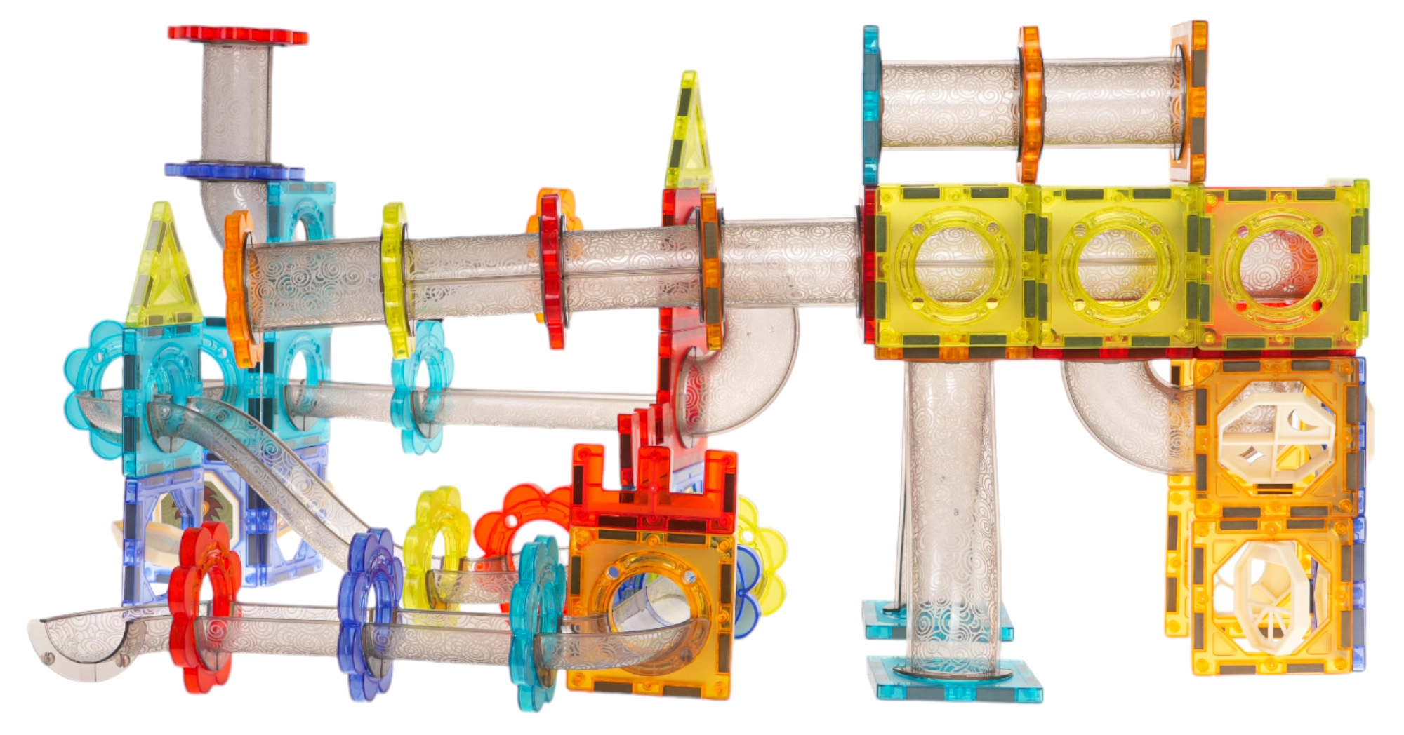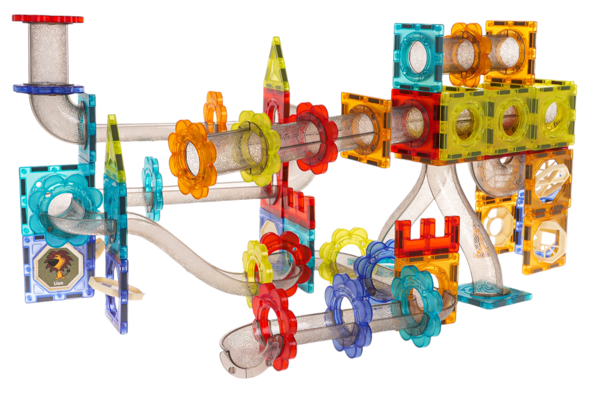 Елементите се свързват с качествени магнити, които държат отлично. Децата лесно могат да строят и пренареждат високи и сложни писти.