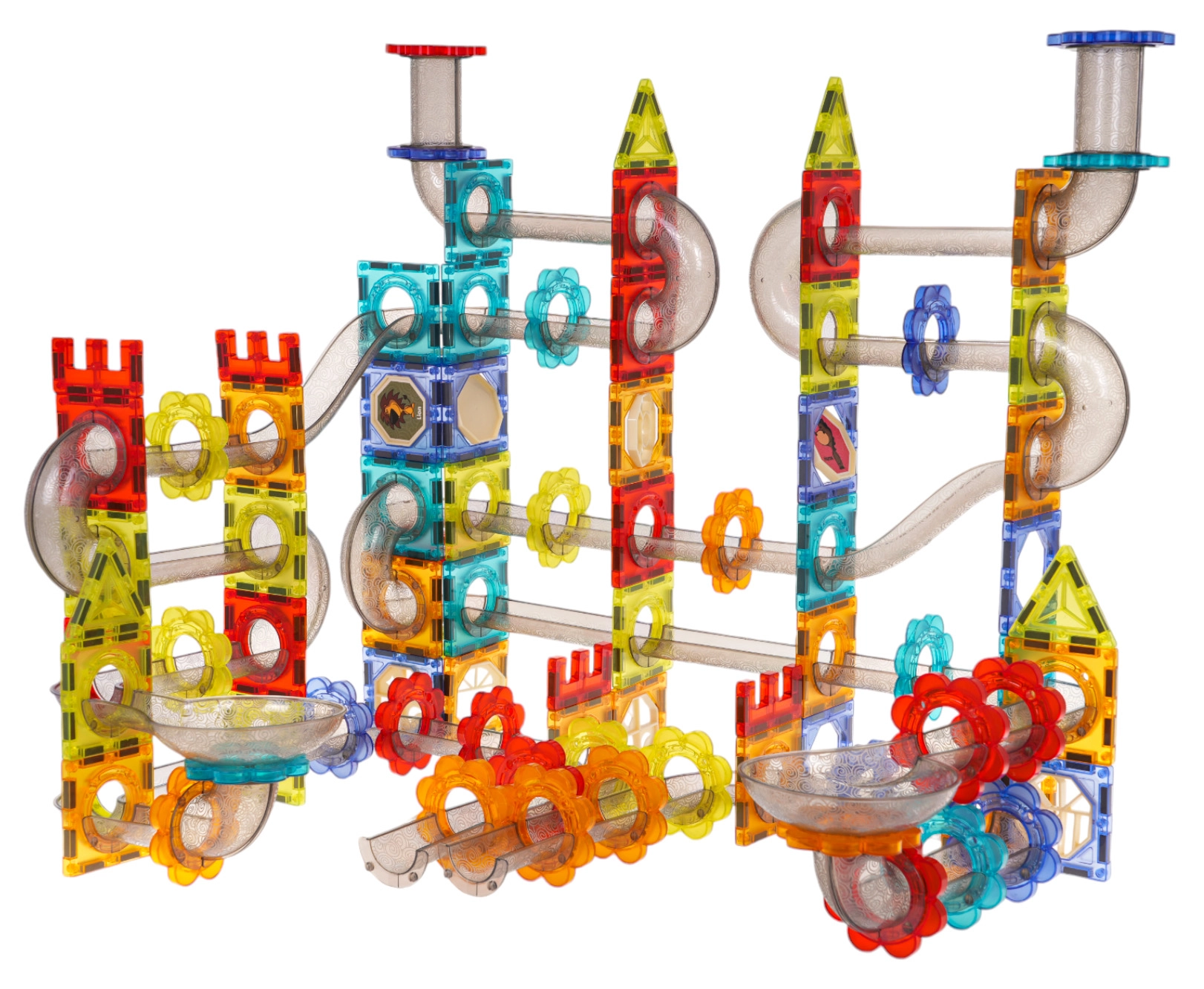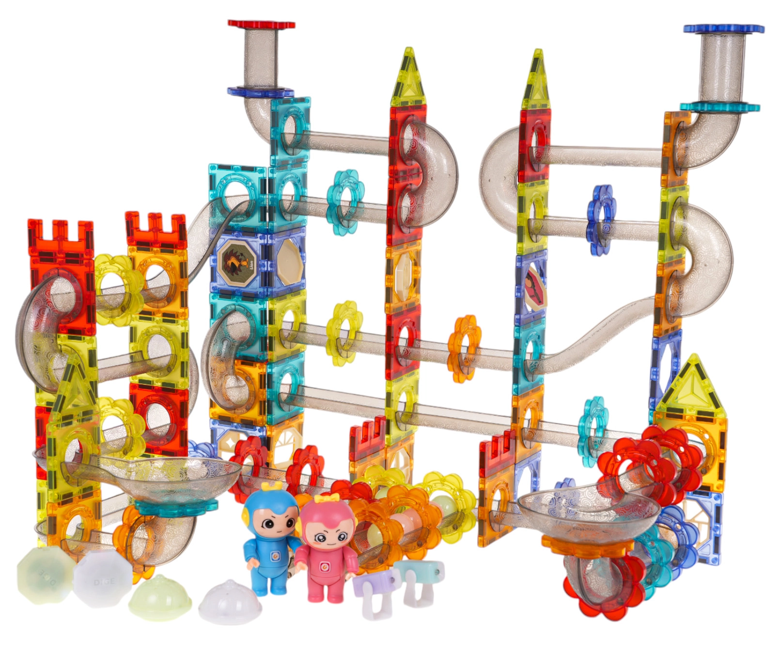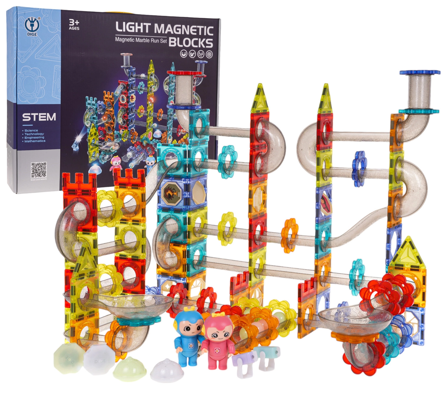 Този креативен магнитен конструктор за деца от 3 години развива фината моторика, логическото мислене и въображението. Частите от висококачествен, гладък пластмасов материал благодарение на вградените магнити се свързват лесно и здраво, така че бързо се строят високи и стабилни 3D конструкции и дълги топкови писти.