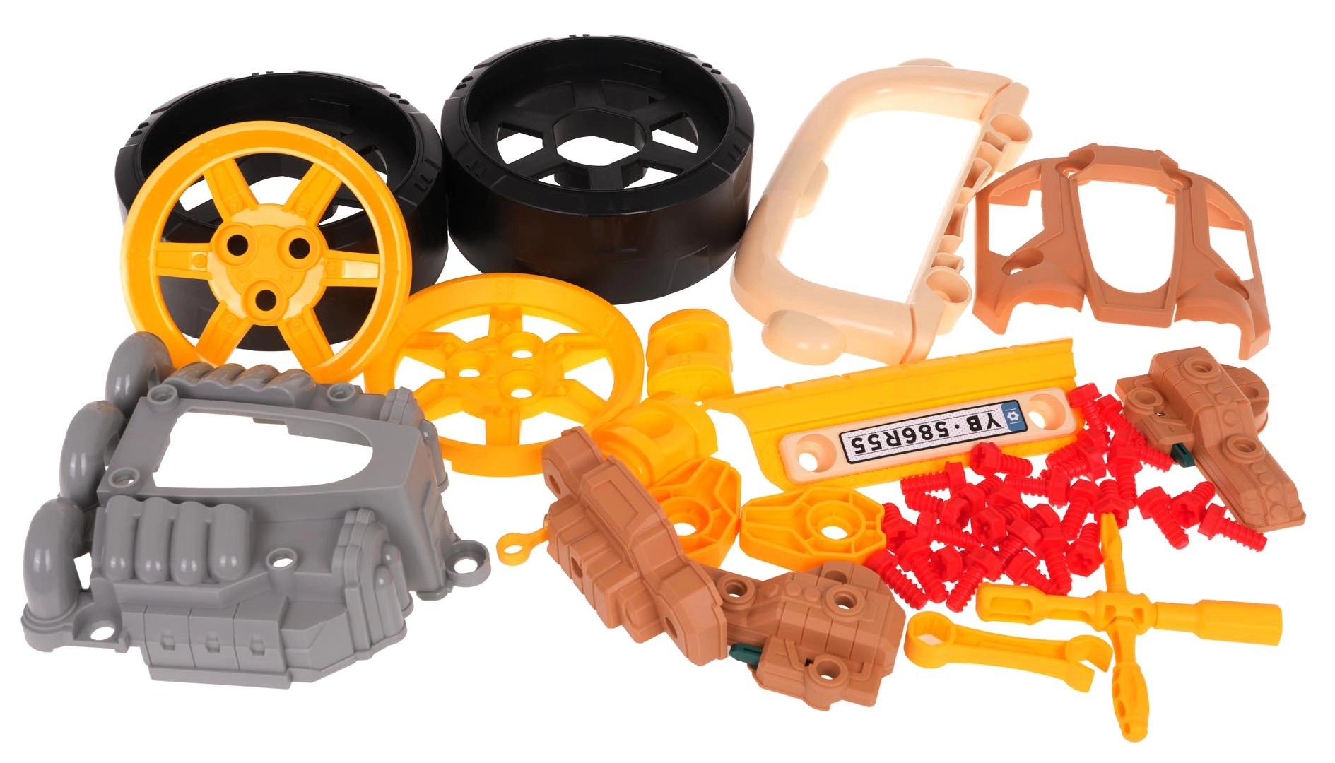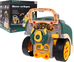 В комплектa са включени инструменти и множество винтове, с които децата могат отново и отново да сглобяват и разглобяват двигателя и колелата. Играта подпомага мануални умения, креативност и техническо мислене. Захранване 3× AA 1,5 V (не са включени в комплекта).