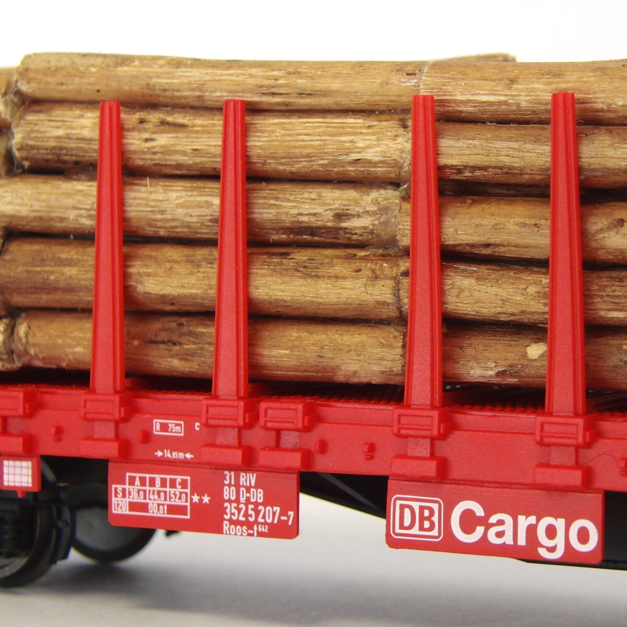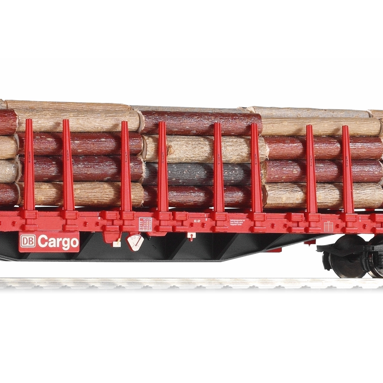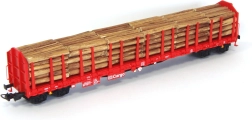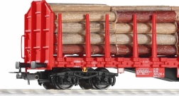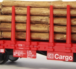 Включен е вярно пресъздаден товар от дървени трупи. Товарът и колчетата могат лесно да се изваждат и да се адаптира подредбата на вагона според вашите нужди.