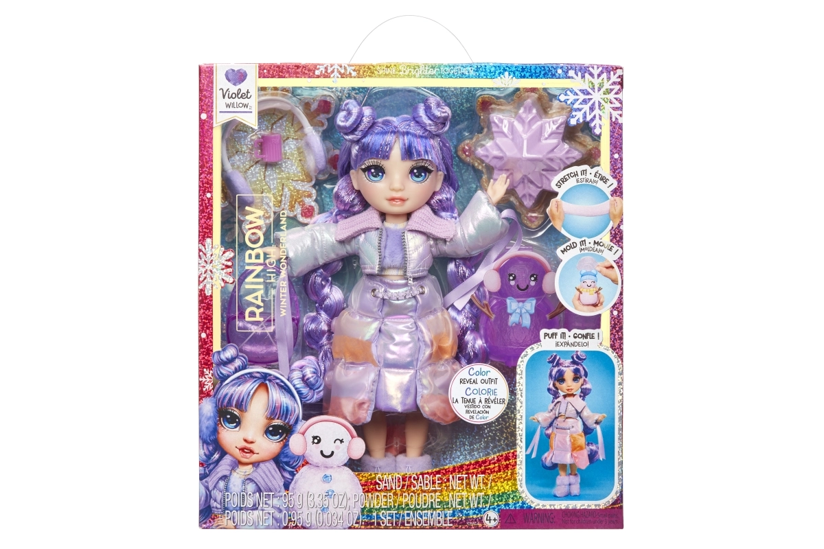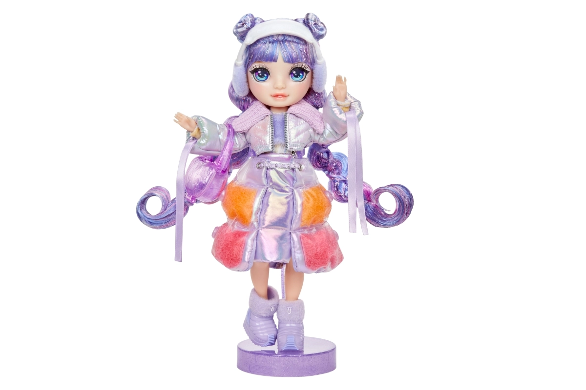 Открий зимния свят на RAINBOW HIGH с куклата Violet Willow от колекцията Winter Wonderland. Добави вода към включения „сняг“ и наблюдавай впечатляващата промяна на тоалета – материалът набъбва, разпенва се и разкрива игриви цветове и текстури. Ефектът може да се повтаря отново и отново, така че стилизирането никога не омръзва.