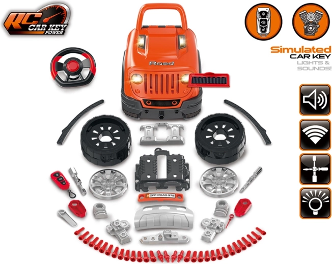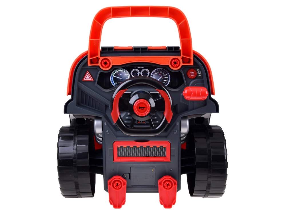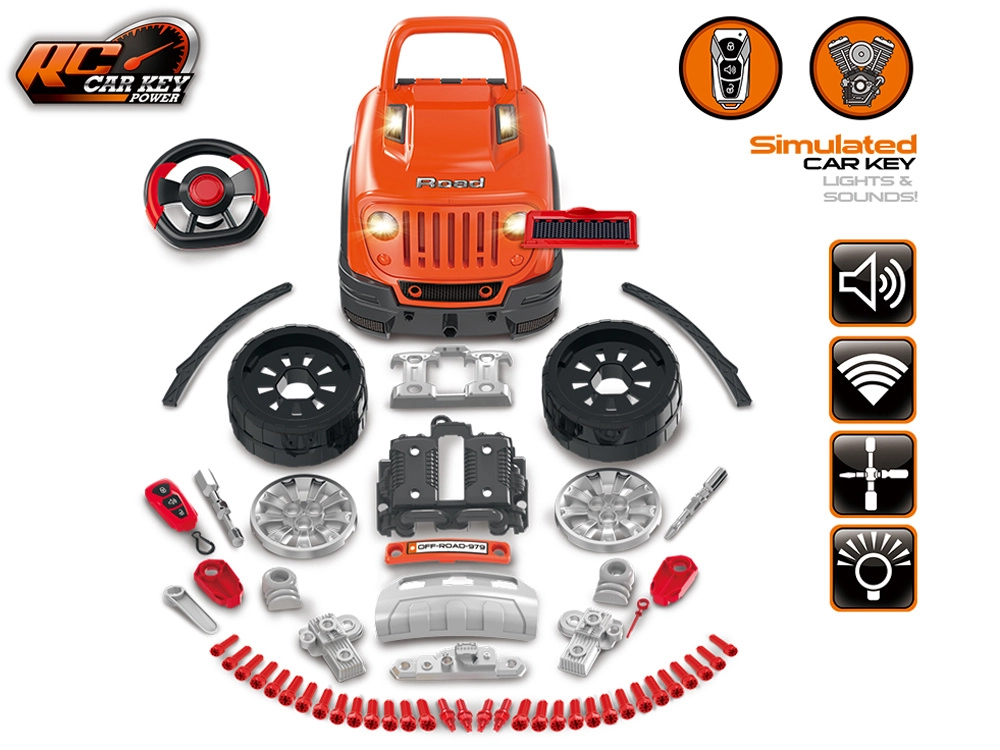 В комплекта има богати аксесоари: болтове, отвертка с шестограм, 4-посочен инструмент, мерителна щека за масло и филтър, табела с регистрационен номер и стойки за „повдигане“ на колата. Въртящ се волан с функционален клаксон и скоростен лост добавят още забавление.
