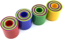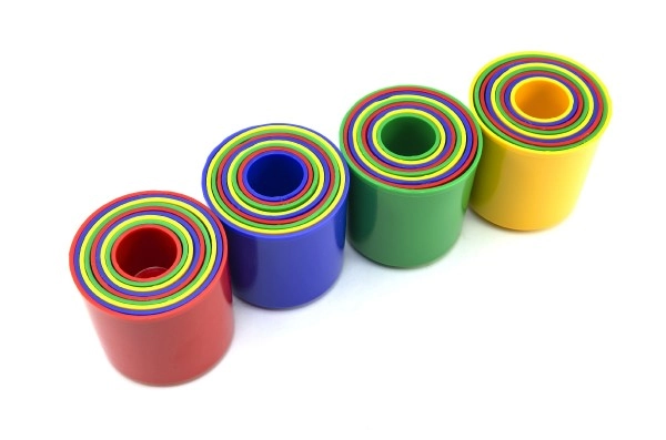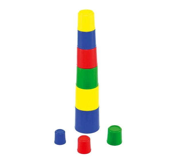 Купчините чашки са класическа образователна играчка, с която децата упражняват прецизността на движенията и разбират принципите на размерите. Всяка чашка е с различен размер и цвят, така че може да се строи висока кула или да се вместват една в друга, тренирайки логика и търпение.