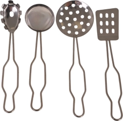 Включени са още щипки, черпак, шпатула и перфорирана лъжица – всичко, от което децата се нуждаят за готвене и сервиране.