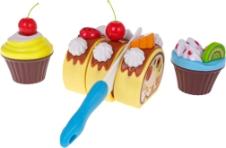 Дървен комплект плодове и зеленчуци за рязане в кофичка
