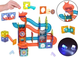 Този цветен комплект магнитни кубчета позволява на децата да проектират и строят както прости форми, така и сложни 3D конструкции и трасета за топчета. Подбрани елементи са оборудвани с LED подсветка, която създава ефектни светлинни проходи за топчетата и буквално озарява всяка постройка. В комплекта ще намерите също стикери и ясна инструкция с вдъхновения.