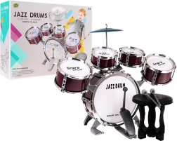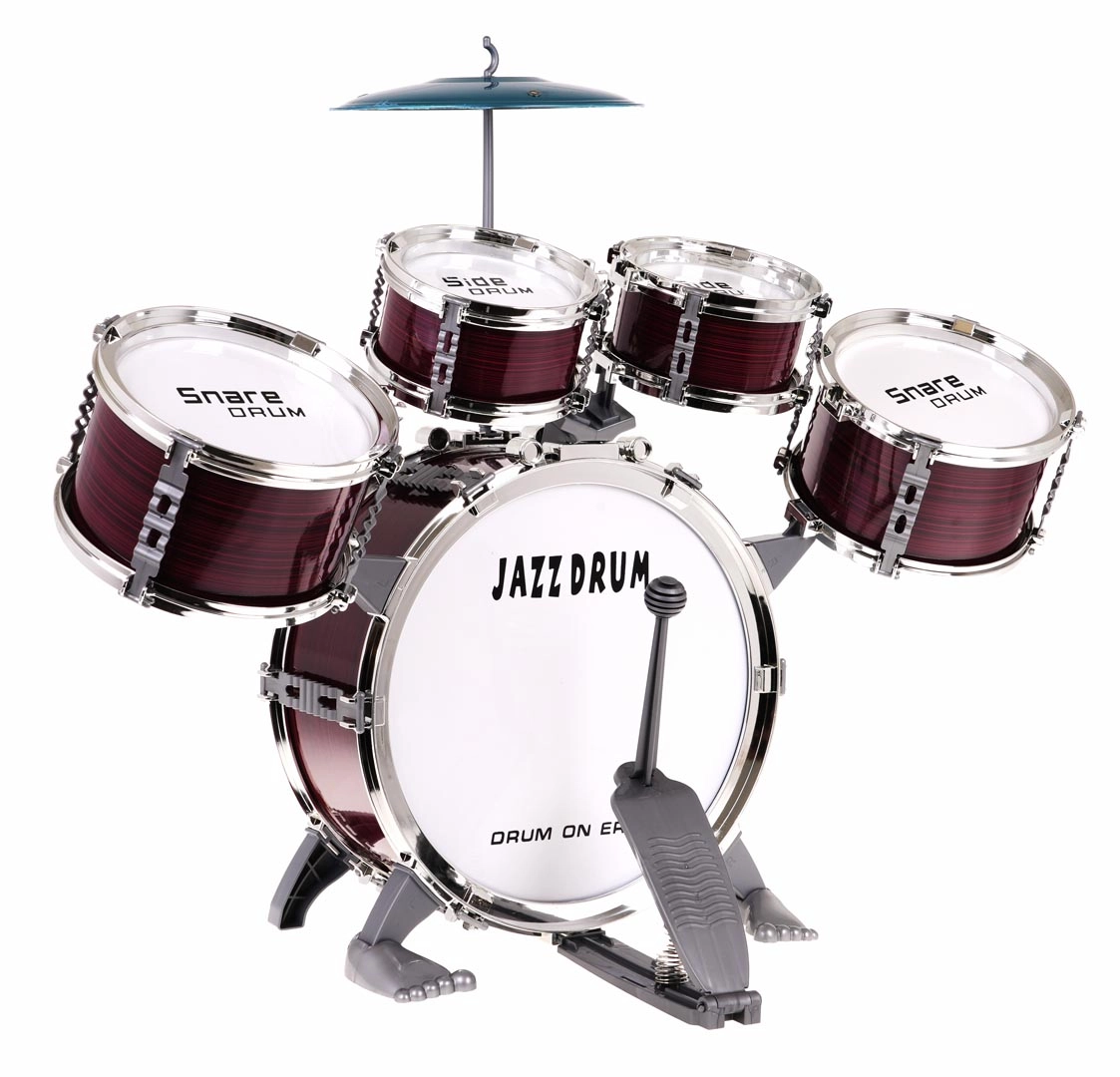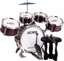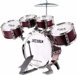 Съдържа всички необходими части: пет барабана, чинел, палки и столче.