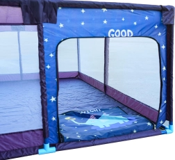 Меката правоъгълна кошара ще се превърне в безопасно място за игра и почивка на вашето бебе. Благодарение на ниското тегло лесно я премествате там, където е нужна — у дома в хола или в двора. Мрежестите стени осигуряват отлична видимост вътре и наоколо и гарантират оптимална циркулация на въздуха.
