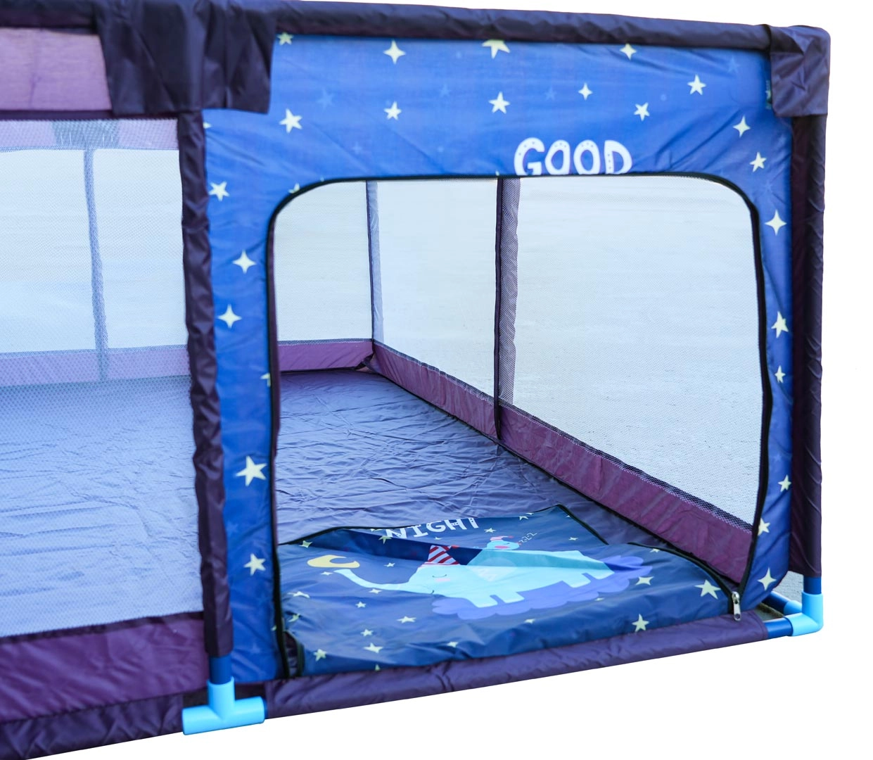 Практична и безопасна кошара за най-малките от първите дни на живота. Тя е лека и лесна за пренасяне, подходяща за интериор и екстериор. Четири мрежести стени позволяват постоянен надзор и циркулация на въздуха, а страничният вход с цип с мотив на слонче улеснява влизането и излизането. Материалите се почистват и дезинфекцират лесно, а конструкцията е стабилна и безопасна.