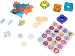 Магнитният конструктор с 49 части комбинира творчество, светлинни ефекти и динамиката на топкова писта. Полупрозрачните сини, оранжеви и жълти елементи се свързват лесно и изграждат 3D конструкции с тунели, мостове и завои. Светещите топчета и подсветените модули добавят ефектна визия към играта и подтикват детското любопитство.