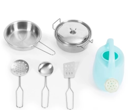 - 7 бр. (тенджера, капак, тиган, 2× шпатули, черпак, малка кана)