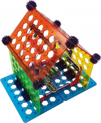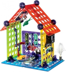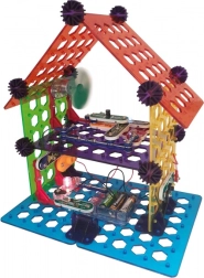 Комплектът BOFFIN II Моят дом е идеален за деца от 8 години, които искат да разберат принципите на електричеството и умния дом. Основата е перфорирана платка, върху която частите се щракват лесно – без запояване, безопасно и с незабавен резултат. Ще построите осветление, аларма, двуетажна къща, вятърна мелница и парти къща и ще проверите функционалността според приложените схеми.