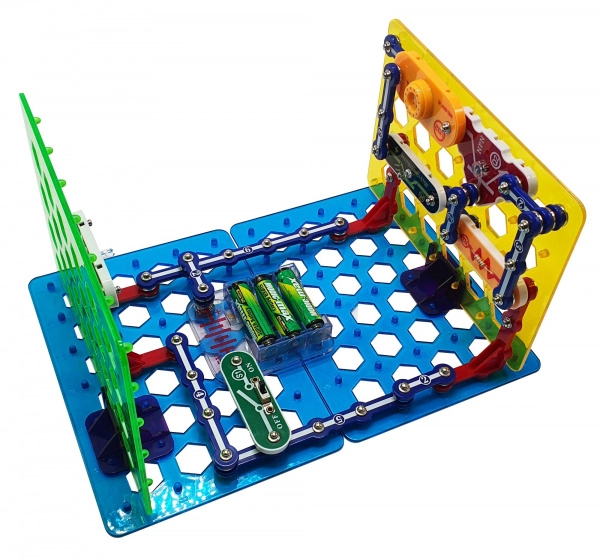 Цветово разграничени компоненти се щракват върху основната платка без запояване. Идеално за първи стъпки в електрониката и практично STEM обучение.