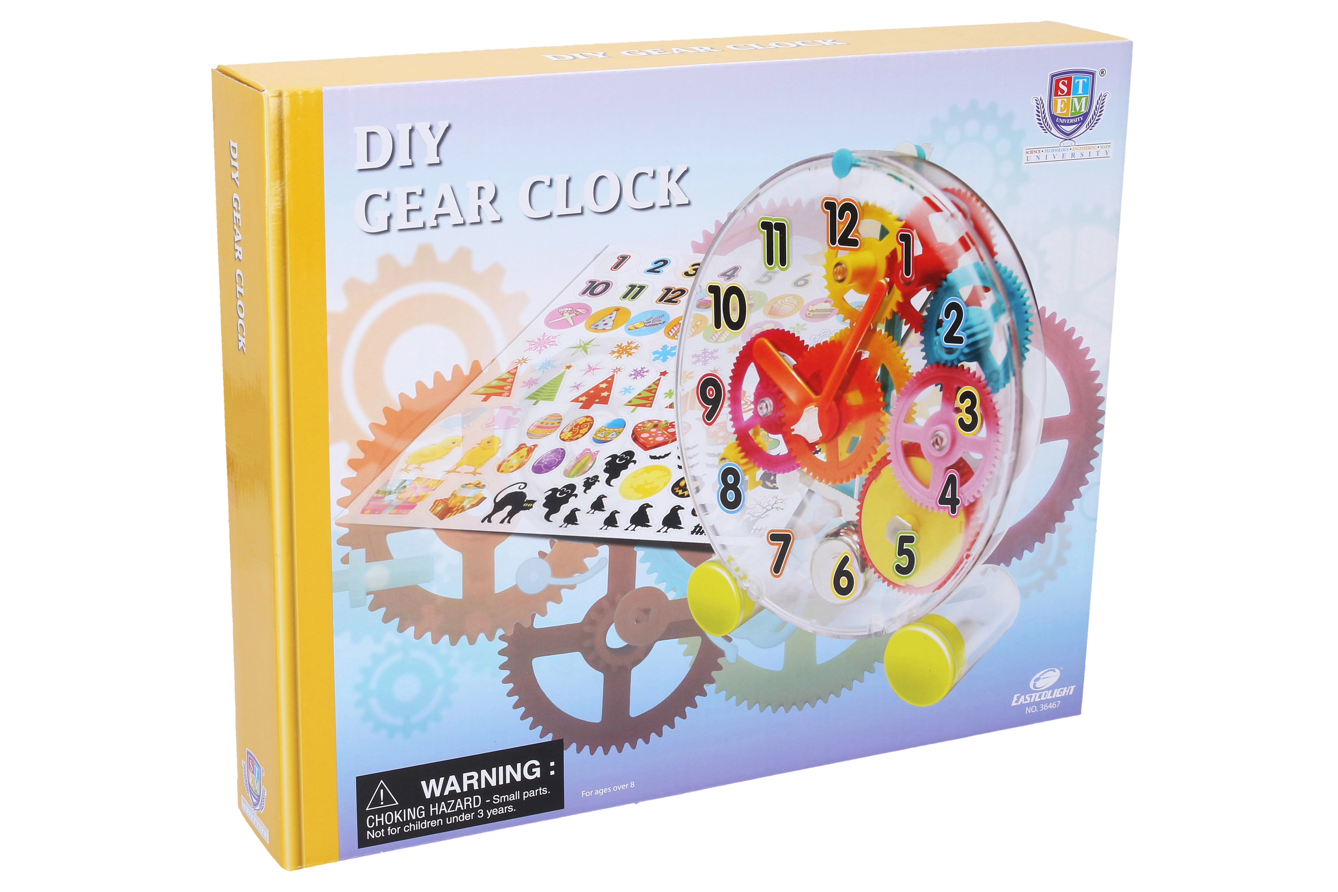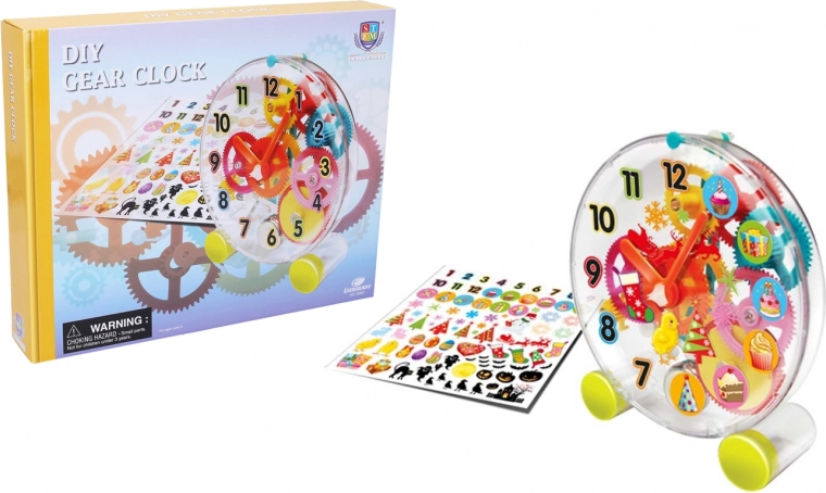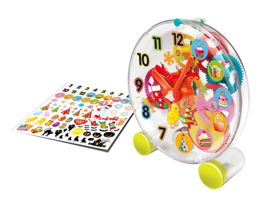 Часовникът след сглобяване работи на базата на механичен механизъм, който е едновременно образователен и забавен. Част от комплекта са декоративни стикери, с които да доизпипате дизайна по свой вкус.