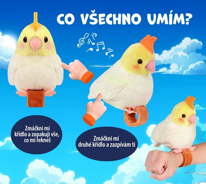 Този папагал пее и повтаря думи, което осигурява интерактивно изживяване, което едновременно учи и забавлява.