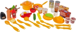 Тиган, тенджера, чинии, прибори, подправки и макети на храни – всичко прецизно съчетано за дълги часове креативна игра.
