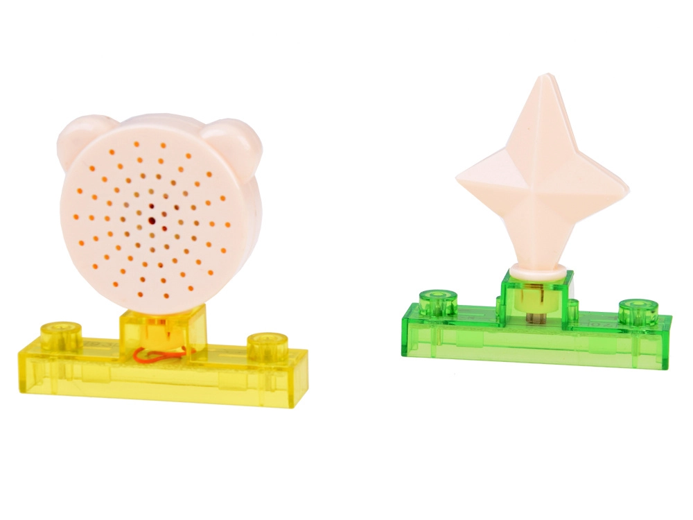 Завъртете розовата перка, запалете LED диодите и пуснете звукови ефекти. Децата веднага виждат какво прави тяхното свързване – мотивацията за още опити е гарантирана.