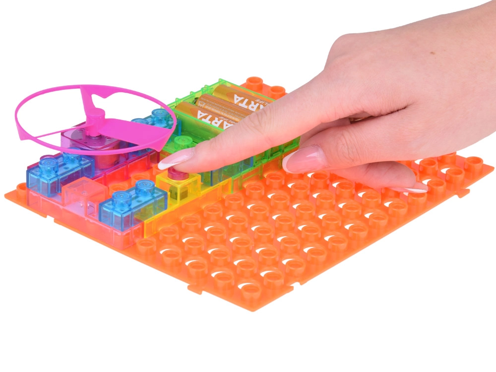 Този интерактивен електронен комплект развива логическо мислене, мануални умения и естествено любопитство. Благодарение на ясно означените модули децата бързо разбират принципите на проводимостта, серийното и паралелното свързване, както и основните зависимости между напрежение, ток и съпротивление. Проектите дават моментална обратна връзка – перката се завърта, диодите светват и говорителят свири.
