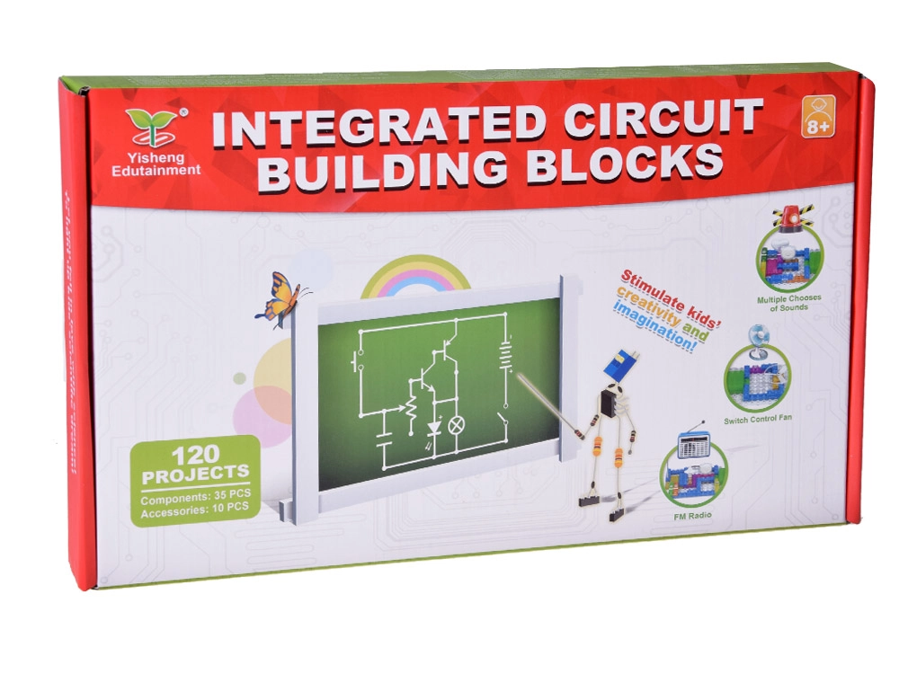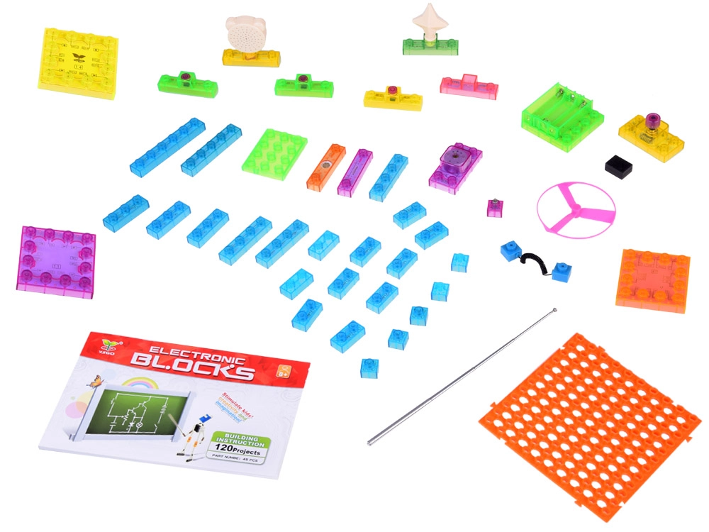 Открийте забавния път към света на електрониката с този образователен комплект за деца от 8 години. Сглобете до 120 проекта от цветни модули върху базова платка и разберете как работи електрическата схема. Включени са компоненти като LED диоди, мотор с перка, говорител, превключватели и свързващи елементи – всичко проектирано за безопасно и учене чрез игра.