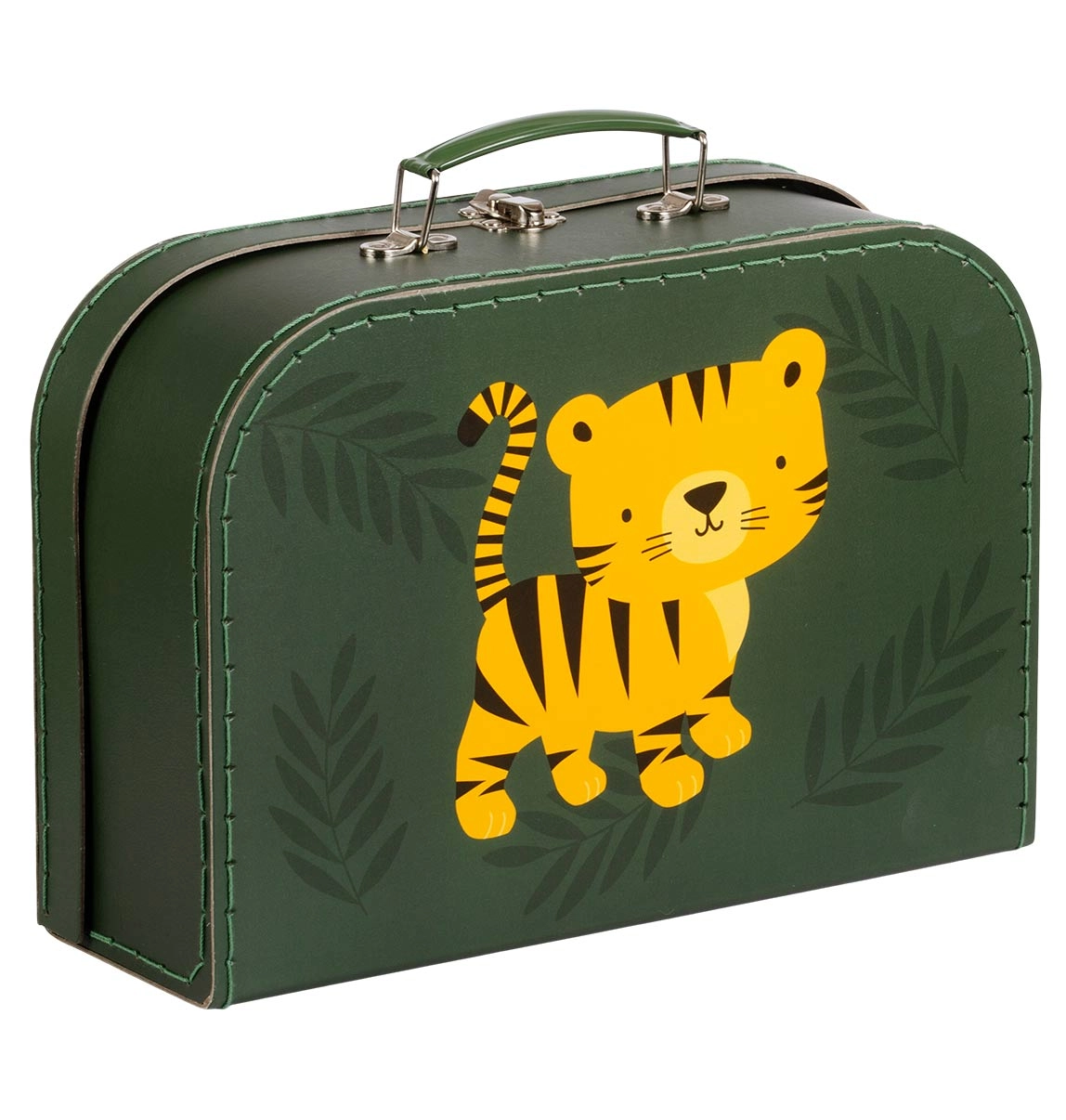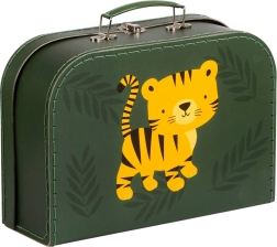 Очарователен комплект от два детски куфара с мотив на тигър и джунгла ще зарадва малките изследователи. Предлага издръжлив картон с полиестерни шевове, метална дръжка и закопчалка и два различни размера за практично подреждане на играчки, съкровища и творчески материали.