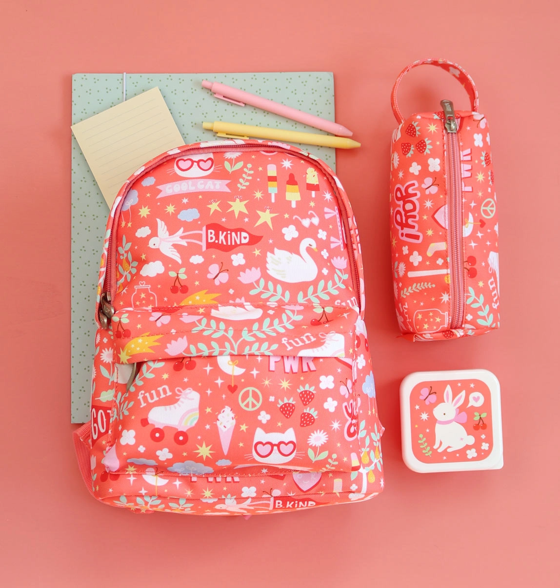 Ученически трислоен несесер BAAGL Дъга, розов