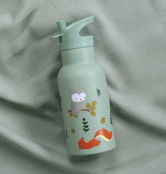 Очарователният горски мотив ще зарадва децата, а качествената изработка ще оценят родителите. Бутилката е лека, добре пасва в детската ръка и благодарение на двустенната конструкция предлага надеждна изолация. За горещи напитки може да се закупи допълнително неръждаема завинтваща се капачка (продава се отделно), която превръща бутилката в термос.