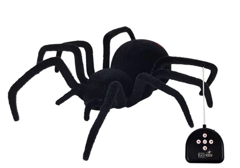 Реалистичната реплика на отровната красавица Черна вдовица е чудесна за шеги, домашно „терариумче“ и като образователна играчка. Тялото е покрито с мек космат материал, който достоверно имитира истински паяк, а дългите крака осигуряват естествено пълзящо движение. Сините светещи очи подсилват страховития ефект.