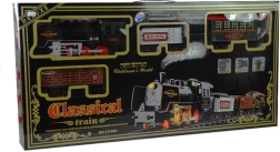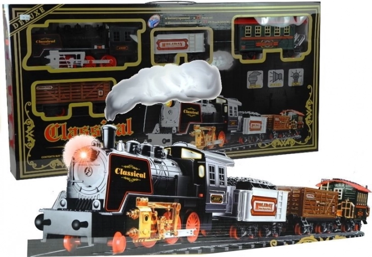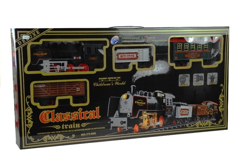 Този фантастичен комплект съдържа 27 части, включително локомотив, три вагона, железопътна станция и 22 различни релси. Релсите се сглобяват лесно и позволяват различни комбинации, осигурявайки неограничени възможности за игра. Локомотивът може да се движи напред и назад и по време на движение изпуска реалистичен дим, допълнен от светлинни и звукови ефекти.