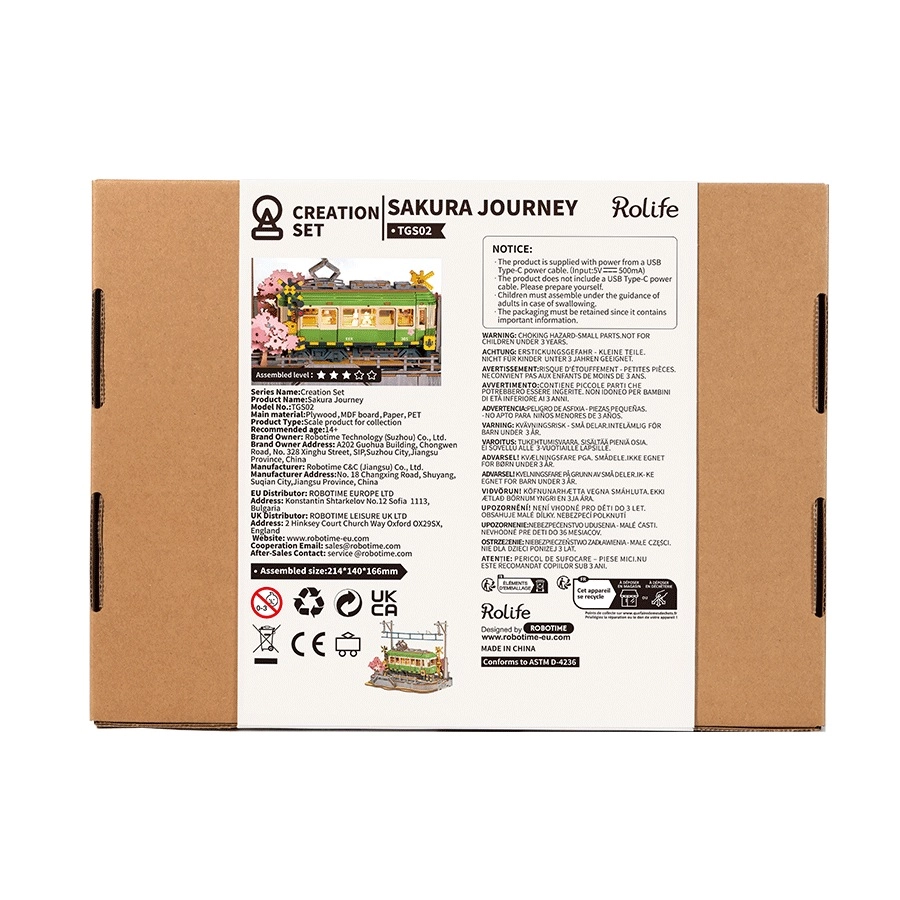 Потопете се в света на миниатюрната архитектура с уникалната 3D дървена сглобяема пъзел станция Сакура. Този прекрасен модел, вдъхновен от японската трамвайна спирка Камакура Коко-Мае, предлага реалистични детайли като цъфнали сакури и LED осветление, което превръща модела в истинска прелест.
