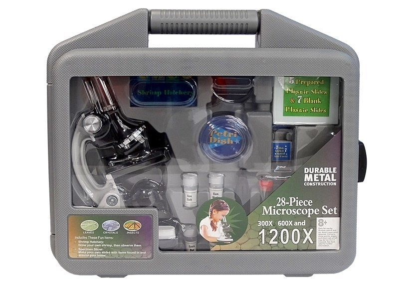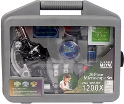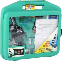 Този образователен микроскоп е отличен избор за деца, които искат да изследват природата и микросвета навсякъде – всичко е прибрано в издръжливо преносимо куфарче. Благодарение на трите обектива с увеличение 300x/600x/1200x и регулиране на фокуса лесно се разкриват детайли на листа, косми, вестникарски печат и подготвени препарати. Интегрираното LED осветление с превключвател осигурява ясен образ.