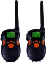 Забавни и безопасни детски уоки-токи с обхват до 100 м, които ще зарадват малките изследователи, както и полицейски или пожарникарски екипи в игрите. Лесно управление с един бутон ON/OFF, мека гъвкава антена, устойчива на счупване, и чисто предаване на гласа правят този комплект идеална играчка за приключенски игри у дома и в двора. В комплекта има 2 броя в тъмносин цвят и включени 9V батерии.