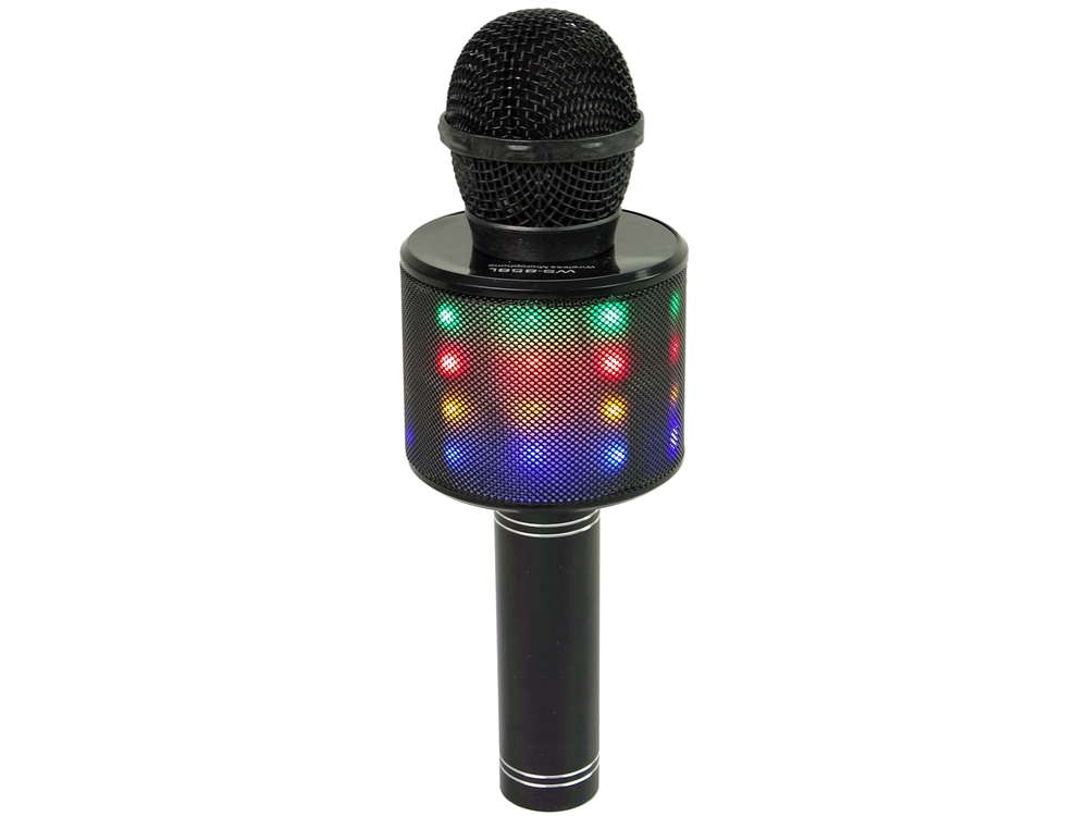 Насладете се на домашно караоке по всяко време и навсякъде с този безжичен микрофон с вградени високоговорители. Лесно сдвояване чрез Bluetooth, мощен 5W звук, запис и модулация на гласа, LED осветление и широка съвместимост с телефон, таблет или лаптоп правят този микрофон идеален избор за семейни празненства и детски партита.