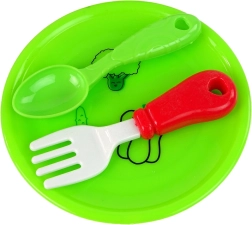 Насърчава децата към безопасна игра с кухненски принадлежности и опознаване на различни видове плодове.