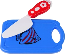 Включва дъска за рязане и обезопасен нож, съобразен за деца.