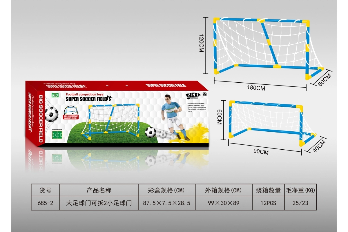 Страхотна футболна врата, която може да се използва като една голяма врата или да се преобразува в две по-малки. Този гъвкав дизайн предлага повече възможности за игра според вашите предпочитания и нужди.